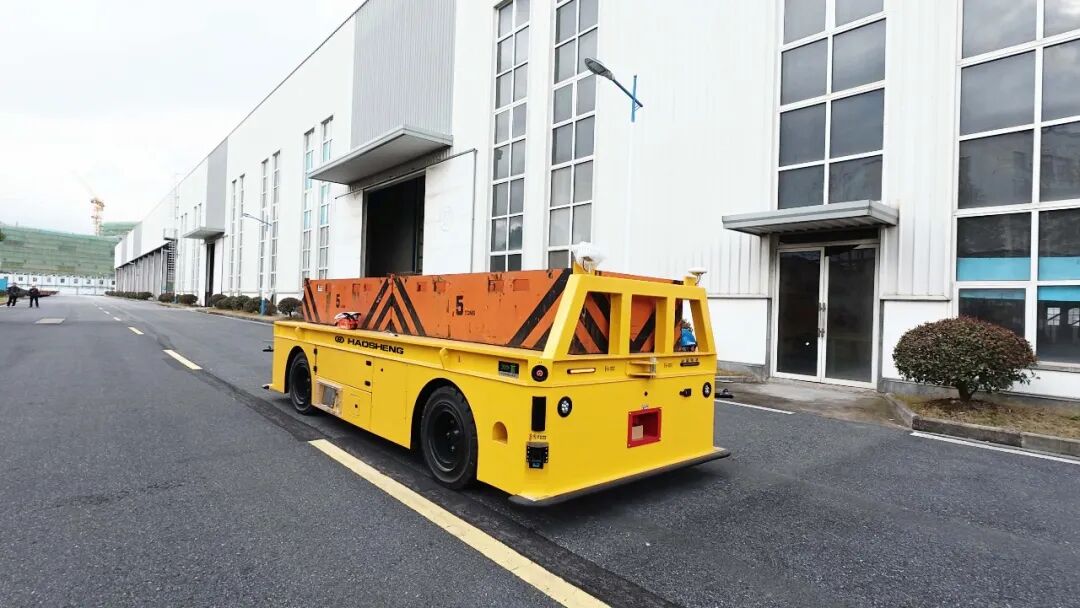 3月,杭州豪盛推出高速版重载AGV。该重载AGV的载重能力为1-100t,运行速度达10km/h,是普通AGV的6倍。整车采用3D SLAM激光导航+RTK导航混合导航方式,适应室外场景,车体对角各安装一组激光避障雷达,前后方向各安装一组毫米波雷达和实时监测的摄像头,多重安全保障兼顾实时行车记录和数据传输,智能、高效、安全可靠。