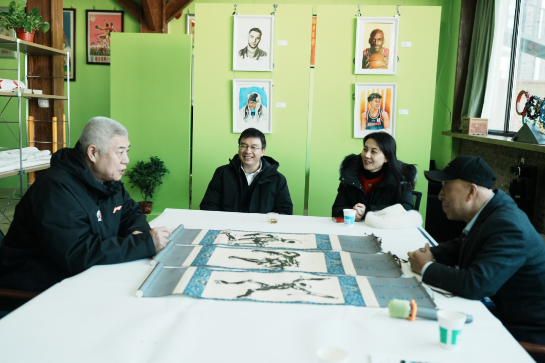 李祥馆长与中国篮球协会徐济成副主席及篮球名人堂办公室团队,宋庄镇党委书记刘磊、镇长赵程红就中国篮球名人堂与篮球群英荟等工作进行了座谈。