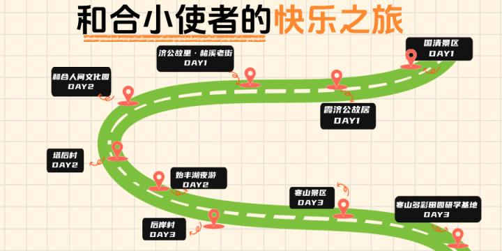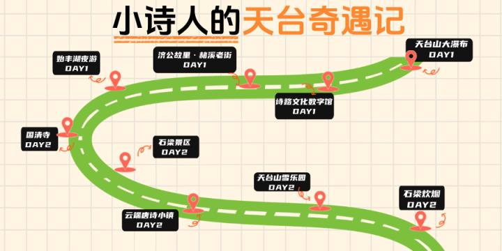 此外,还有几条专属的旅游线路推荐给大家,小诗人的天台奇遇,跟着徐霞客去冒险、和合小使者的快乐之旅。大家既可以登顶赤城山观"台岳南门"丹霞地貌,赏天台山大瀑布的壮阔水韵,让孩子在山水间学习生态知识;又可以重走霞客古道,探秘石梁飞瀑的“天下第一奇观”,感悟“读万卷书,行万里路”的实践真谛;还可以参观赤城山紫云洞、济公故居,聆听佛道故事,感受“和合文化”的包容与智慧。