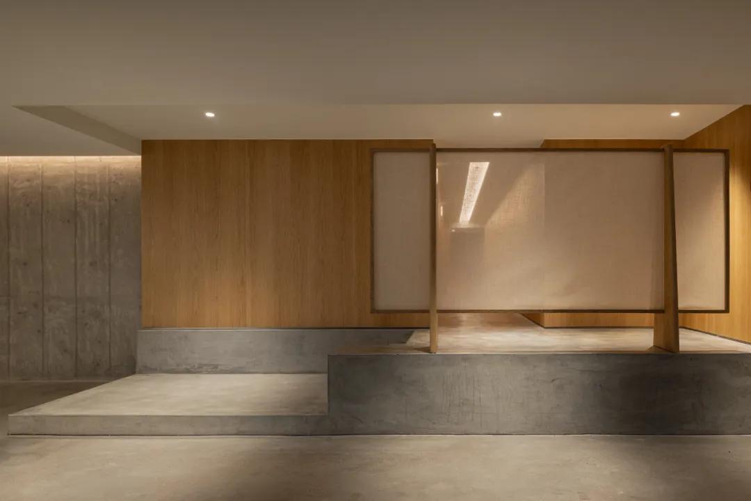 这条动线中,参观者的步履随空间的开合而产生节奏变化。界面出不同的场域心理。这种“不设限”的设计,使空间在视觉上呈现出一种摇摆克制的力量感,