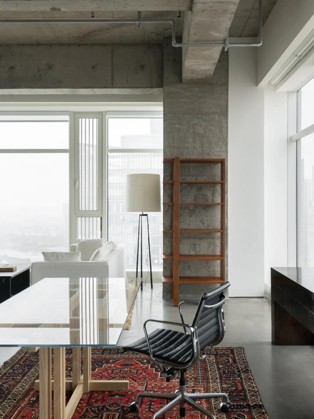 独立办公区逐步过渡以职能为主,营造出克制而轻松的氛围,呈现的是向内的沉淀。转而采用了主导色调的现代主义风格。轻巧的灯具系统、柔软的布艺沙发与凹陷的色彩中古各地进行蒙太奇式的组合,消解了商务办公的紧绷感,代之以一种生命力的、集办公与协作于一体的灵活空间。