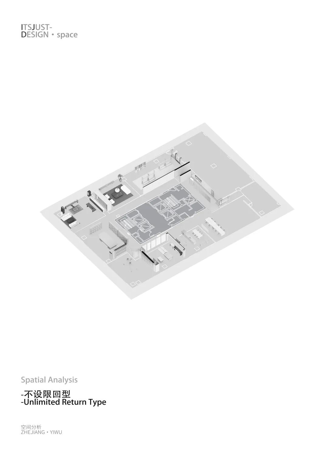 The space, through the deconstruction and reorganization of 'stone, wood, corridor, and loop,' introduces a continuous 'loop-shaped' circulation in the design. This cyclical path breaks the monotony of traditional linear exhibition viewing, creating a spatial sequence that is 'free and flowing, simple and clear.'