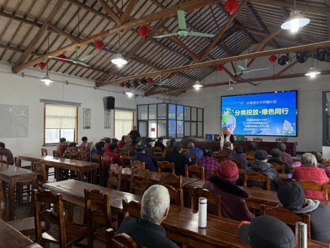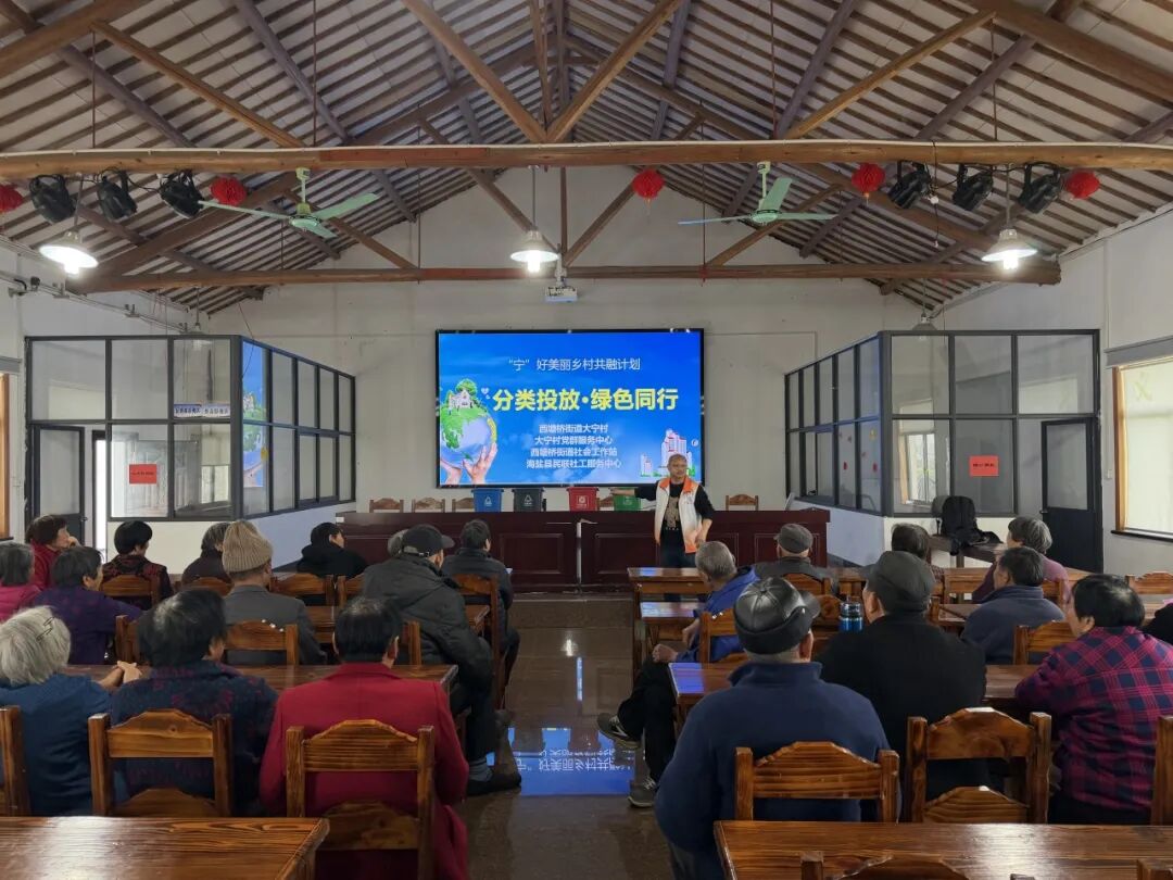 虞社工通过PPT直观讲解,结合垃圾分类四分桶实物展示,详细介绍了可回收物、厨余垃圾、有害垃圾、其他垃圾的分类标准、投放方法,用生动的案例讲解垃圾分类的重要意义,引导村民养成分类投放垃圾的良好习惯,共同守护干净、整洁的乡村环境。