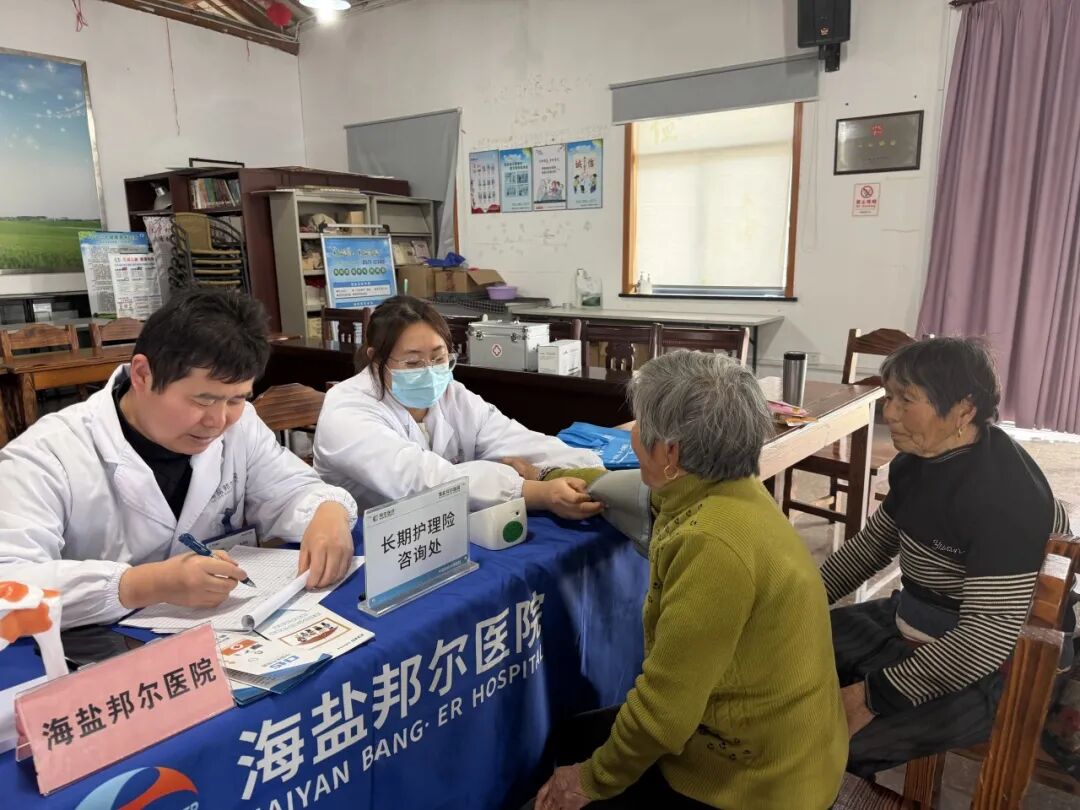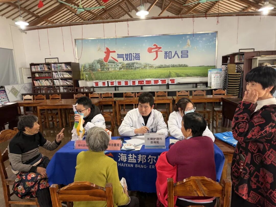活动现场,海盐邦尔医院的王医生耐心为每一位老人测量血压,细致询问身体状况,针对大家普遍关心的肩膀酸痛、腿脚不便、高血压调理等问题,用通俗易懂的语言讲解日常养护技巧、饮食注意事项,手把手教大家简单的拉伸动作,帮助缓解身体不适。“我这肩膀疼了好长时间,儿女不在身边,也没好好去检查,今天王医生给我讲了怎么调理,还教了我按摩的方法,太贴心了!”屈奶奶握着医生的手,连连道谢。