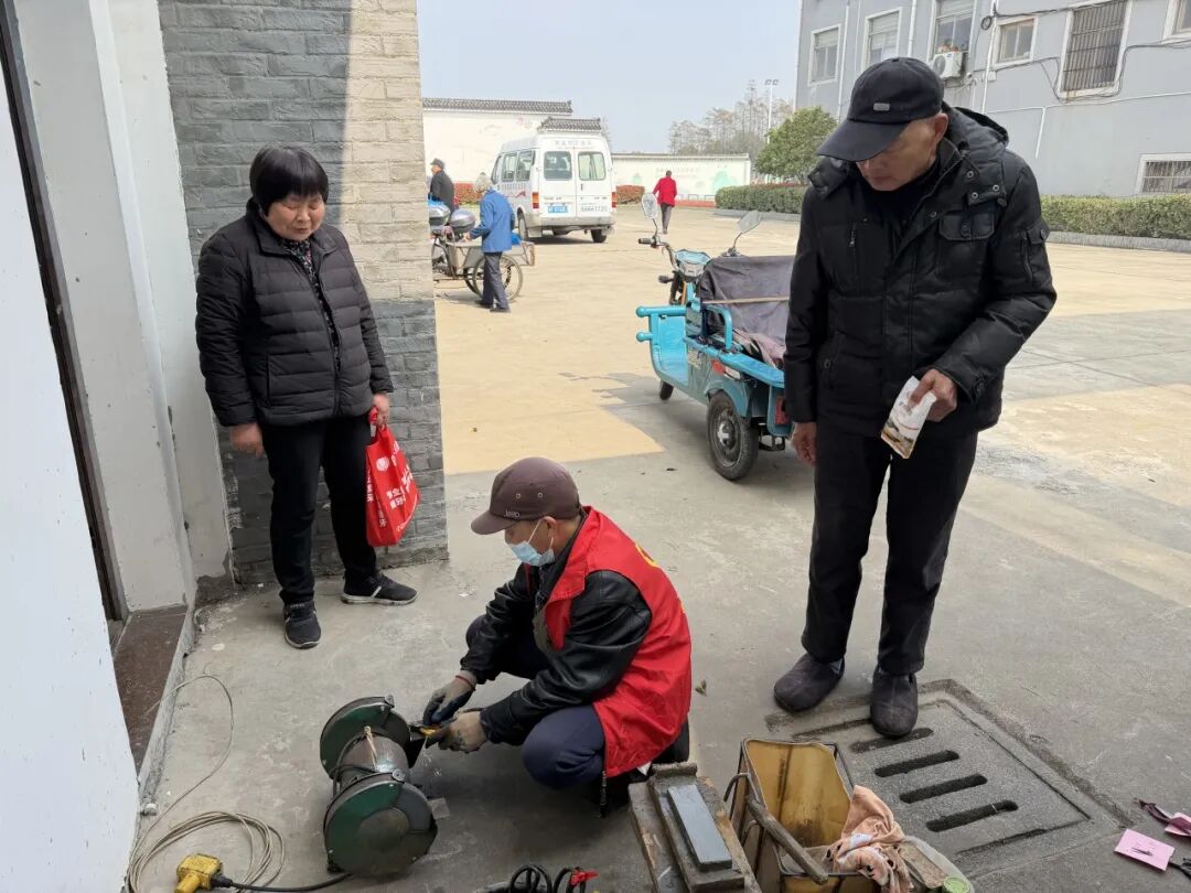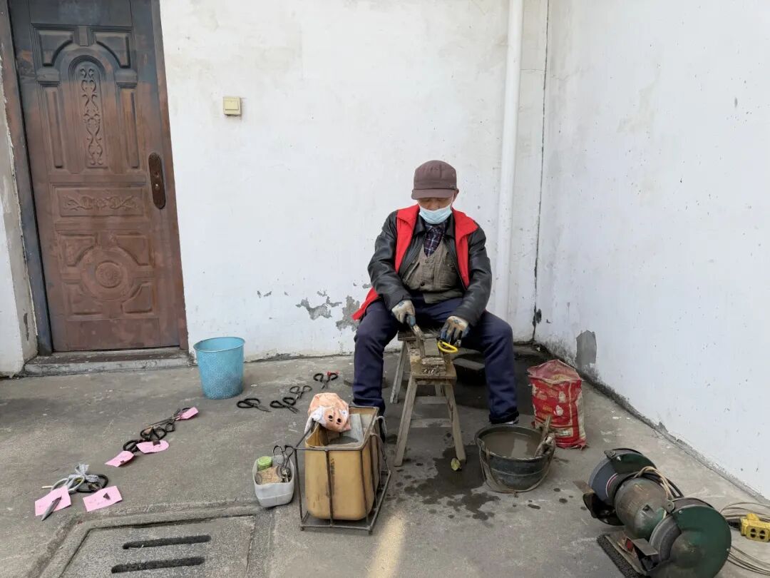 张师傅埋头苦干,认真为村民打磨菜刀、剪刀等家用刀具,生锈变钝的刀具经过仔细打磨,很快变得锋利如新。“我家的菜刀用了好几年,钝得切菜都费劲,每次都要特意找地方磨刀,“现在可好了!张师傅每个月都准时来,免费帮我把刀具磨得锃亮。不光省了钱,更是了了我心头一大桩心事!”!刚磨好刀具的杨叔叔,拿着光亮锋利的刀具,开心地说道。