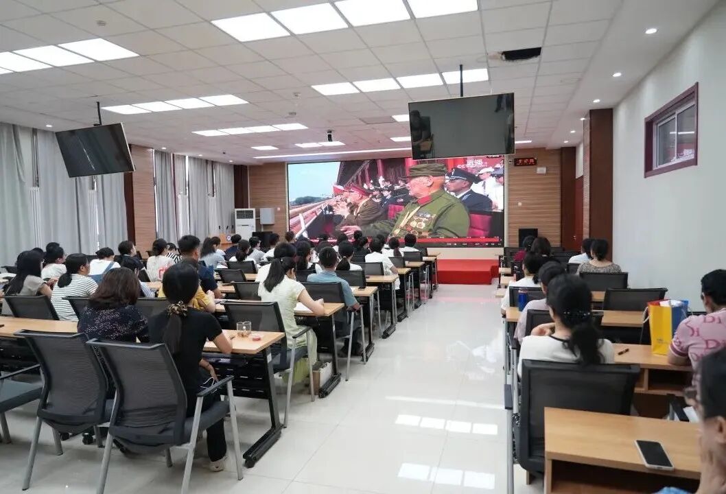 师生们庄严肃穆,深刻感受新时代国防和军队建设的自信与力量。当阅兵仪式正式开始,直播镜头前,整齐划一的受阅方队迈着矫健的步伐依次通过天安门广场,先进精良的武器装备彰显着我国强大的国防实力,师生们的自豪感和爱国热情被瞬间点燃,现场不断发出阵阵掌声。