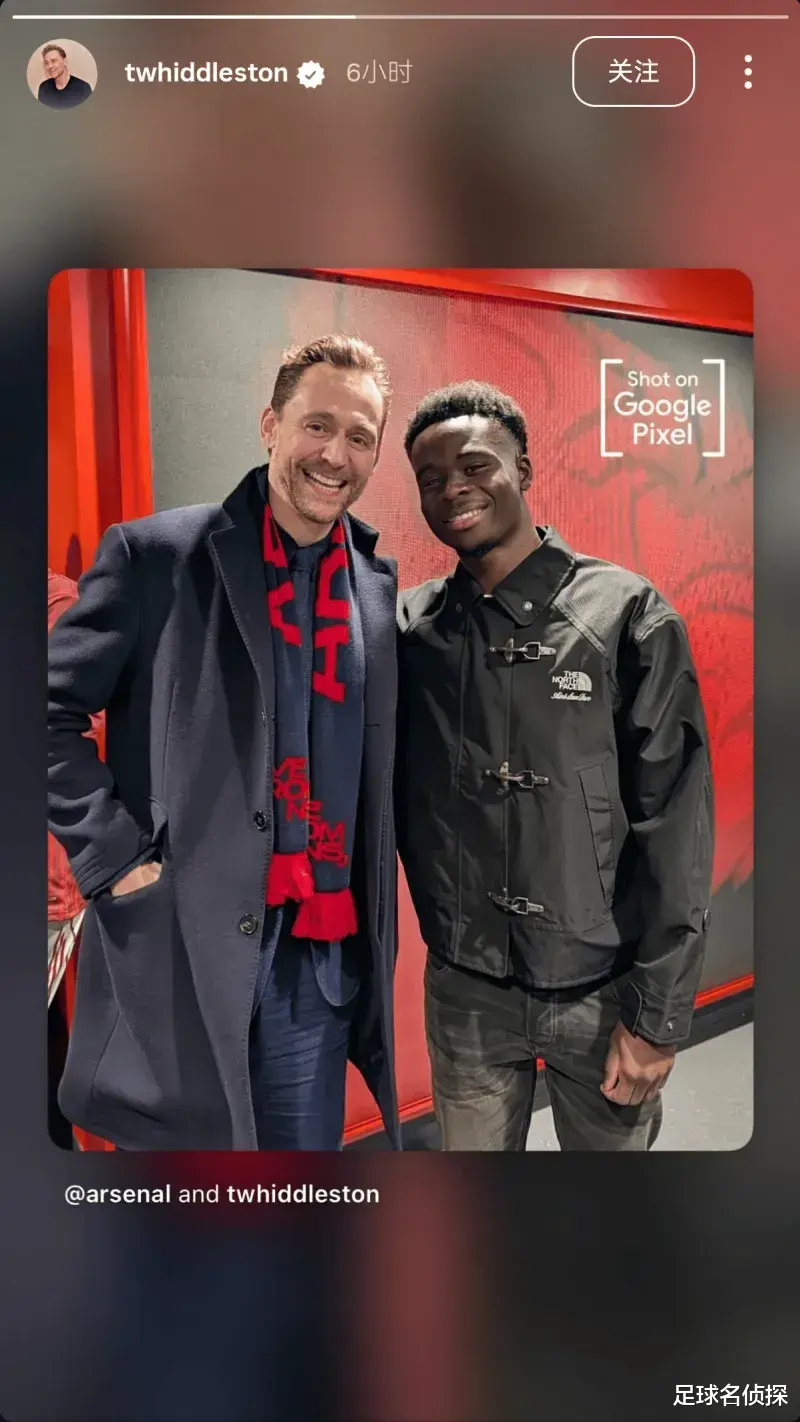 洛基看来很开心,赛后他还和萨卡合影了。抖森堪称是老枪迷了,据说他还是温格的粉丝,那大家就是一家人了!