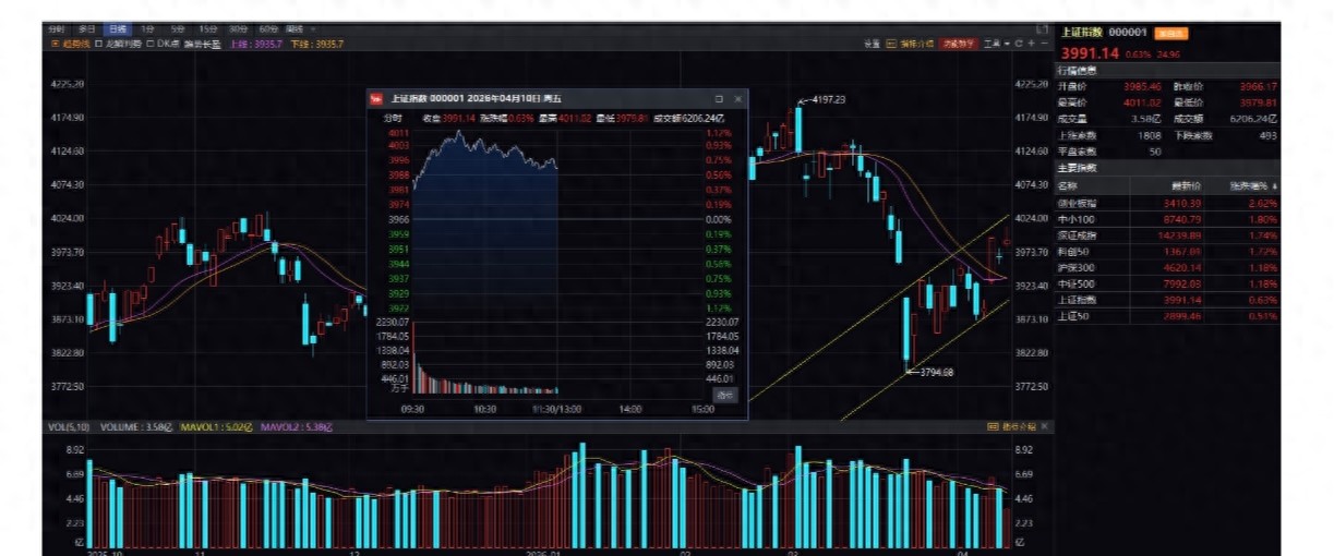 A股今日呈现高开震荡表现,两市主要股指早间全线收红,三大指数集体攀升,沪指一度重回4000点上方,创指盘中突破前期高点创下2021年12月以来新高;场现阶段总体震荡上行回升格局的趋势格局较为明确。从市场量能表现来看,两市半日成交额录得1.5万亿元,数据较昨日同期回升约771亿元;市场量能总体稳定在阶段较高水平,资金交投热情回升向好倾向较为明显。
