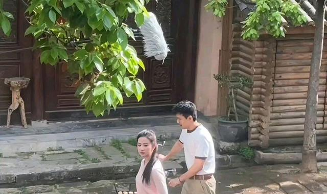 照片中,李现穿着卡其色裤子和白色T恤,推着一辆自行车,与穿着粉色毛衣的刘亦菲并肩而行,两人看起来很青春,画面还是很好看的。