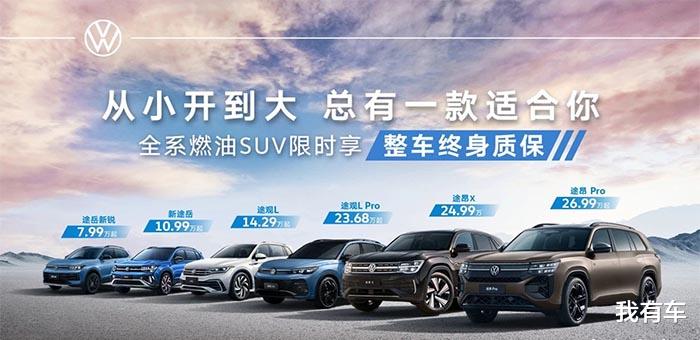 在粤港澳大湾区车展,上汽大众有两件事儿值得关注,首先官方宣告将“一口价”政策扩展至新途岳和途观L车型,新途岳一口价10.99万起,途观L 300TSI龙腾版一口价14.29万。此外,上汽大众还宣布了其旗下全系燃油SUV车型,限时可享整车终身质保服务。