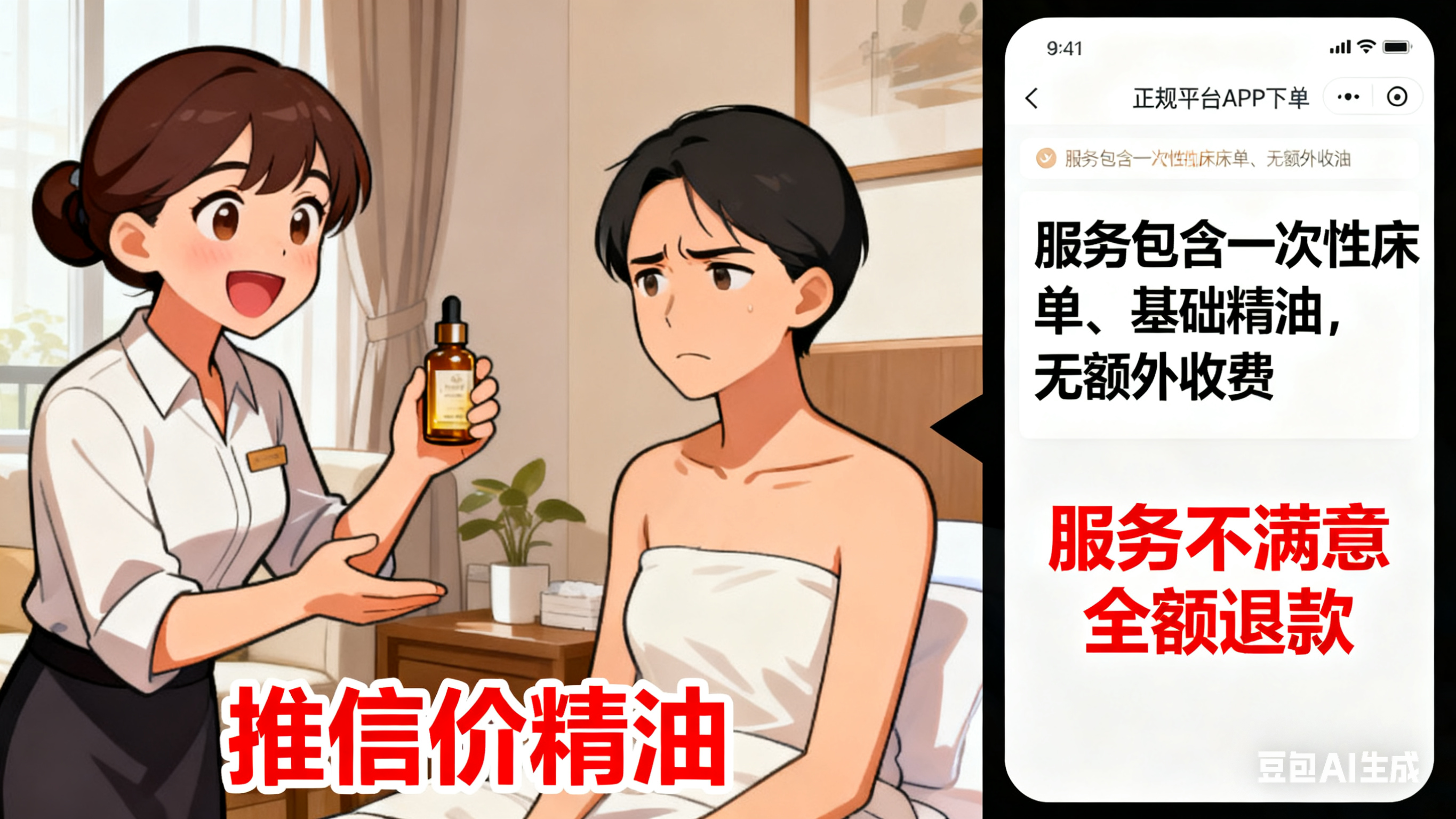 对消费者来说,上门按摩服务中常见的消费陷阱主要有三类。一是 “物料强制加价”,技师上门后会以 “基础按摩力道不足,需搭配专用舒缓精油才有效” 为由,推销 200-500 元不等的产品,二是 “项目拆分套路”,广告中宣传的 “全身按摩”,实际服务时仅涵盖肩颈和背部,若想按摩腿部、腰部等其他部位,需额外支付 100-300 元的 “加项费”,三是 “诱导私下交易”,部分技师会以 “平台抽成太高,私下转账能省不少钱” 为由,劝说用户脱离平台直接微信或支付宝付款,但一旦出现服务质量问题或纠纷,用户因没有平台订单记录,投诉时往往找不到责任方,维权无门。