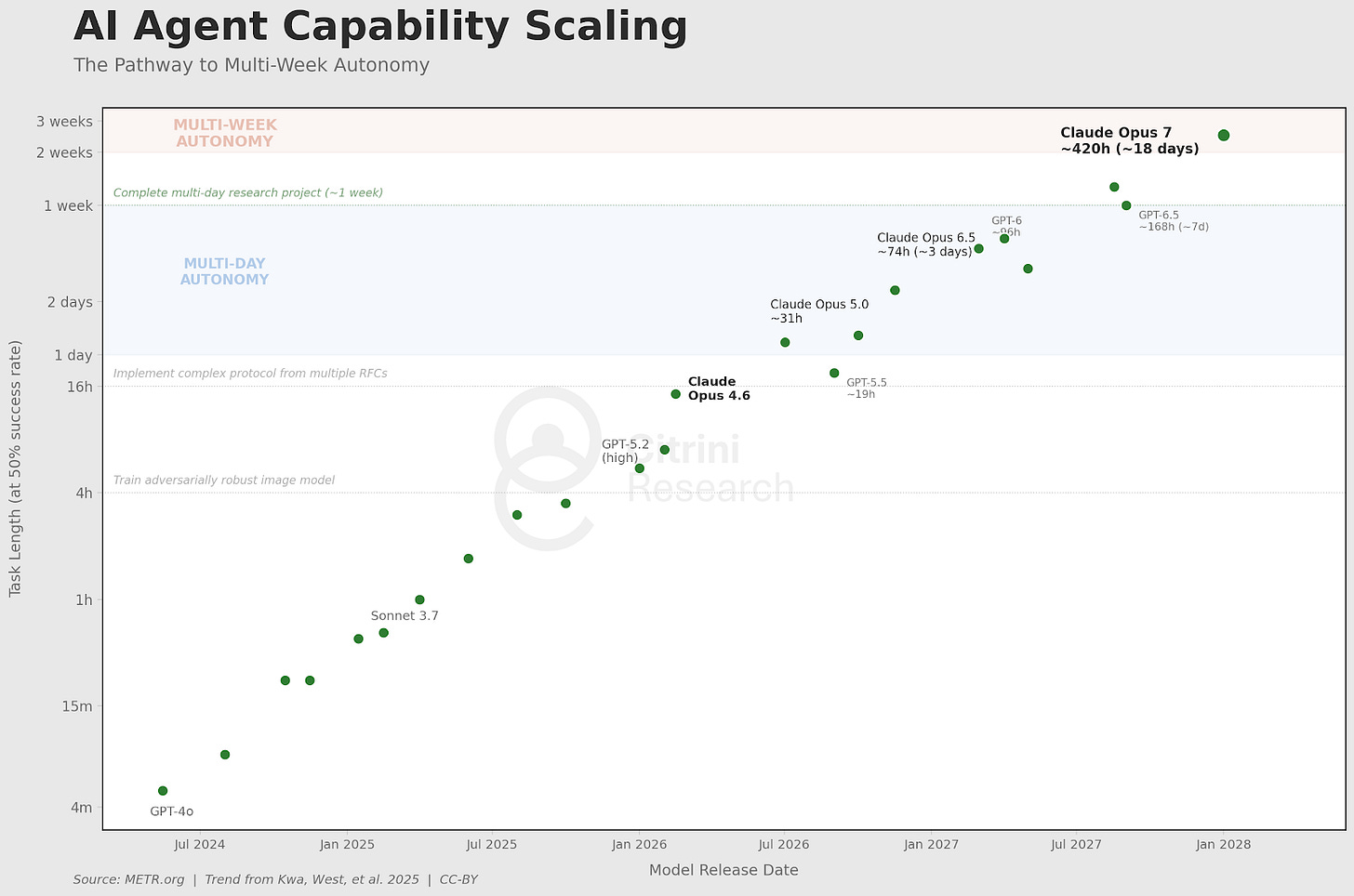 如今,AI 代理处理长达数周的研发任务。指数级的进步碾压了我们对于可能性的想象,尽管每年沃顿商学院的教授仍在尝试用新的 S 型曲线去拟合数据。