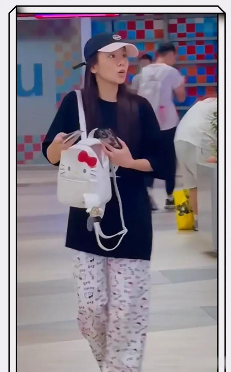 她好像也挺喜欢卡通玩偶。比如她肩上背着一个hellokitty款式的包包,这一点倒是和懒懒的“库洛米”属性有点像?