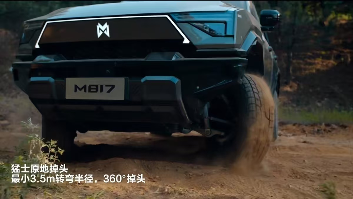 猛士M817以“场景定义功能,技术赋能体验”为核心理念,具备“可城、可野、可远方”的实力,能满足城市通勤、近郊出游、长途穿越等多种场景需求,直指路虎卫士110等传统豪华越野产品,欲以“智能越野”优势实现降维打击。