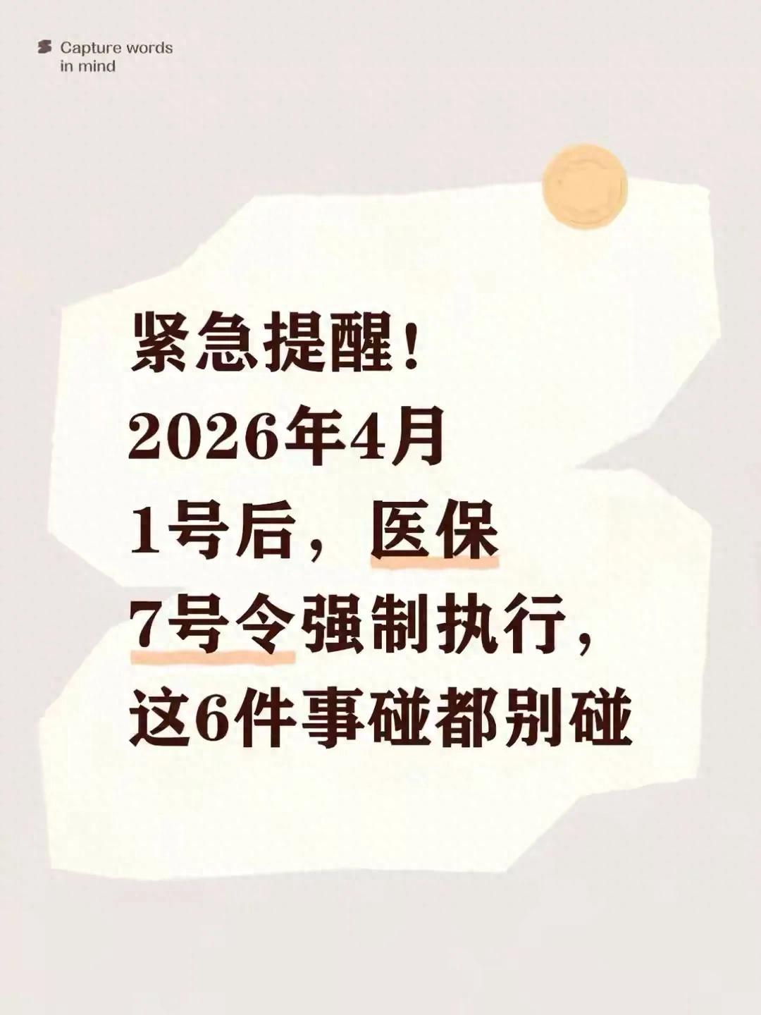 紧急提醒!2026年4月1号后,医保7号令强制执行,这6件事碰都别碰