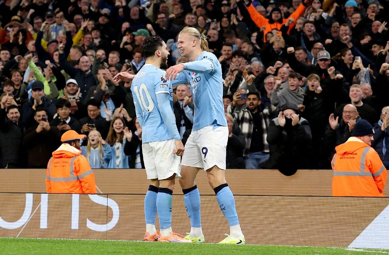 本场独中两元之后,哈兰德在本赛季英超联赛已经打进13球(全运动战进球),哈兰德以13球和姆巴佩并列五大联赛射手榜第1,断层式领跑英超射手榜,领先排名第2的维尔贝克7球。目前,哈兰德的英超生涯进球数达到98球,距离百球里程碑仅差2球。主场击败伯恩茅斯,曼城对伯恩茅斯的战绩是碾压式!
