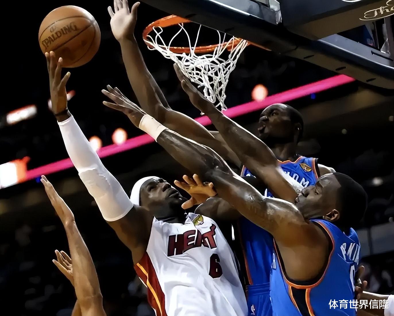 那次总决赛,热火经历了前一年总决赛失利的洗礼,原本就比雷霆三少更加成熟的热火三巨头经过一年来的磨合更加默契,再加上巴蒂尔等冠军拼图的加盟让他们游刃有余,雷霆三少被摁得无法抬头。