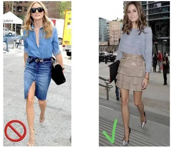 其次,我们在选择裙子的时候也需要完全避开那些所谓的束缚感比较严重的裙子,所谓的束缚感也就是,当我们选择这款裙子的时候,就会让整个人的造型看起来很束缚,因为这种裙子本身就有着一个比较大的弊端。那就是裙子只能和单一的时尚单品进行搭配,稍不留神的话,选择了一些不适合这个单品的,那么整个人看起来就会显得特别low,特别不高级。譬如牛仔裙,牛仔裙就会让整体的造型看起来特别单一化,只能与单色的衬衫进行搭配。所以我们在选择裙子的时候,应该选择百搭款,譬如短裙、百褶裙都是不错的选择。