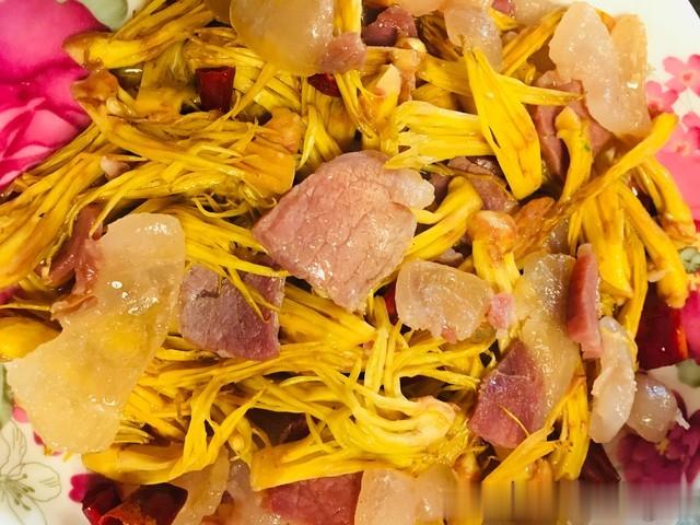 而腊肉虽然属于腌制食品,但在合理的烹饪搭配下,也能成为营养来源的一部分。腊肉保留了猪肉优质的蛋白质和必要的脂肪酸,经过长时间的风干发酵,部分大分子蛋白质被分解为更易吸收的氨基酸,滋味更加鲜美。更重要的是,在这道菜中,腊肉主要扮演“引子”的角色。利用腊肉煸炒出的动物油脂,去浸润原本清淡寡油的花心,使得野菜的口感更加润滑,同时也让脂溶性的维生素得以充分释放,便于人体吸收。这种“荤素搭配、以荤托素”的烹饪智慧,恰好符合现代营养学倡导的均衡膳食原则。