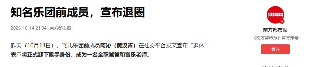 而近日,乐队组合成员阿沁却突然宣布退圈的消息。