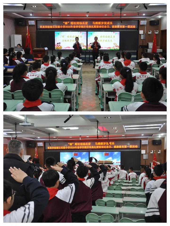 春回大地,暖风拂面,雷锋精神薪火赓续;骏马奔腾,万象焕新,少年逐梦步履铿锵。在丙午马年盎然春意、第63个学雷锋纪念日来临之际,育英学校密云实验小学隆重举行2026年春季学期开学典礼。全体师生深入践行“健康第一”的教育理念,以昂扬姿态启新程,让雷锋温暖与骏马奋进,照亮育英少年向阳成长之路。
