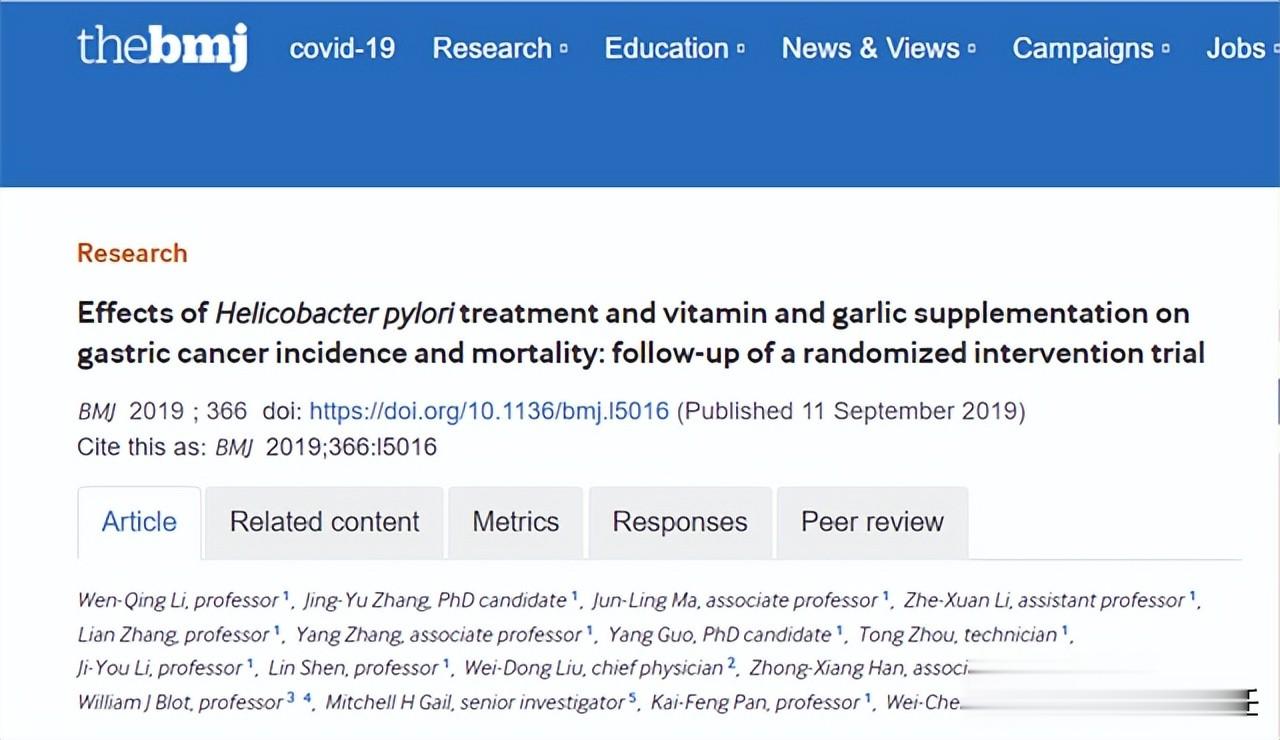 《英国医学杂志》上,发表过北京大学对大蒜降低胃癌的一篇研究。研究者对参与者长达20多年饮食习惯后,发现长期食用大蒜,能降低34%胃癌的死亡率。