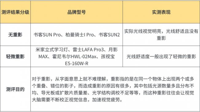 护眼大路灯测评维度②:重影实测前瞻总结: