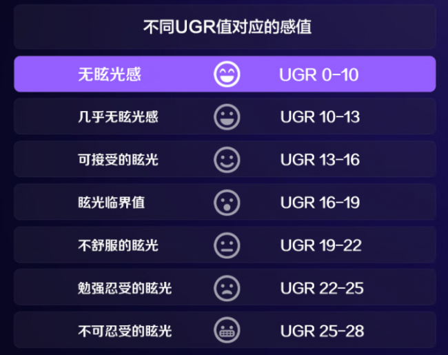 UGR是国际上衡量灯具眩光程度的标准,数值越低表示眩光越小。