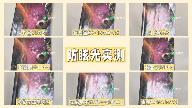 眩光:月影MAX、米家立式学习灯、雷士LAFA Pro3、霍尼韦尔HWL-02Max+