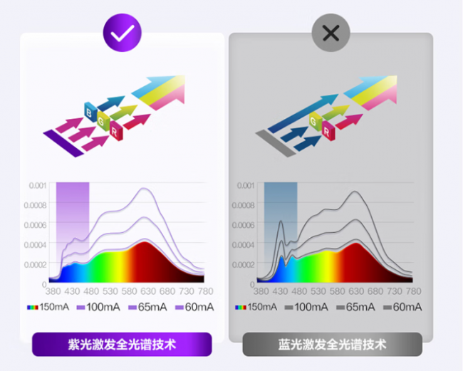 选购技巧②:优选紫光激发的全光谱光源