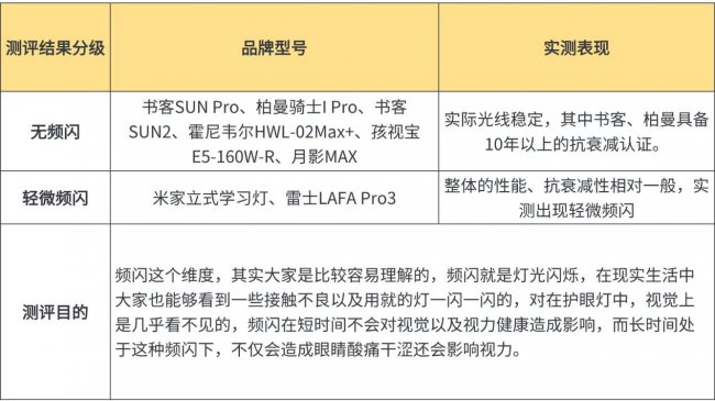 无频闪:书客SUN Pro、柏曼骑士I Pro、书客SUN2、霍尼韦尔HWL-02Max+、孩视宝E5-160W-R、月影MAX