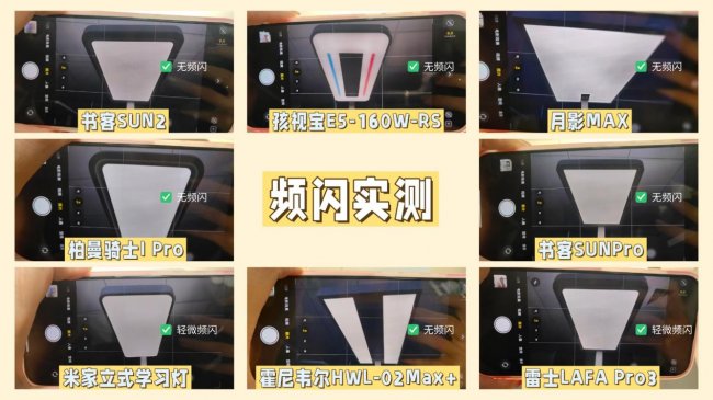 全光谱大路灯推荐哪款?儿童护眼大路灯哪个牌子好?从实测来看,这八款护眼大路灯几乎看不到频闪,所以对此我增加了测评时间,维持2小时,具体的表现如下: