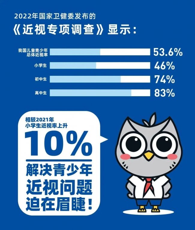 根据2022年国家卫健委发布最新数据,目前我国近视人口已超过7亿,近视率占全球的53.6%。