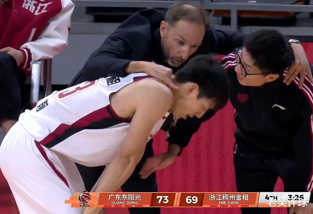 最后一节,张洪硕想要扣篮时,失去重心,摔倒在对手,他痛苦的捂着脚踝。张洪硕这下看着应该是个硬伤,他单腿蹦着下场。陆文博连进两记三分,浙江队把比分反超。了,这股韧劲很足。浙江队最后一攻没能打进,胡明轩抢到篮板,徐杰仓促完成上篮,但是时间已经不够了,两队进入加时赛。