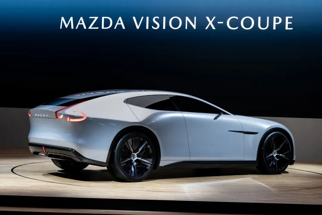 这款轿跑车型长度超过马自达6,实际上采用四门设计,搭载了一套插电式混合动力系统,配备双转子发动机,可使用由微藻制成的碳中和燃料。系统综合功率达503马力,纯电续航可达99英里(约159公里),配合发动机后总续航接近500英里(约805公里)。