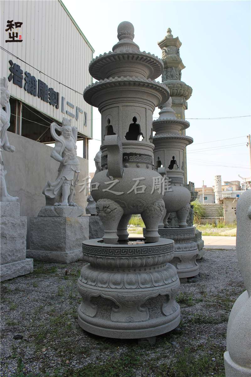 这些石雕香炉摆放于寺庙祠堂之外,它们便不仅仅是一件装饰品,更是信徒们心灵的寄托。在清晨的曙光中,在傍晚的余晖下,香炉内升腾起的缕缕香烟,弥漫在空气中,伴随着信徒们的虔诚祈祷,仿佛能将人间的诉求传达至神圣的天际。它们见证着寺庙祠堂里的每一次法事活动,每一场家族祭祀,成为了宗教仪式与家族传承中不可或缺的重要元素。