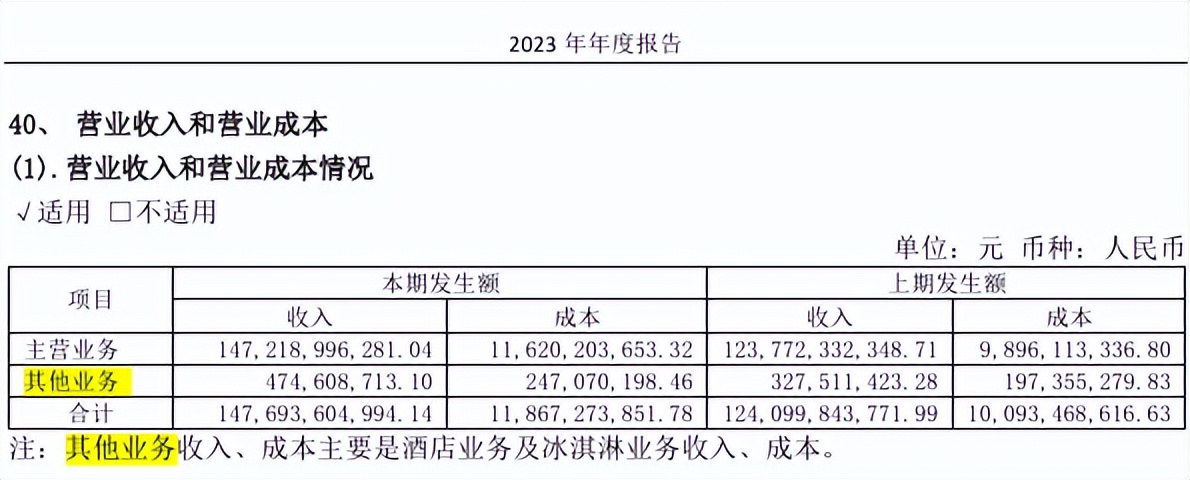 据媒体报道,贵阳茅台冰淇淋旗舰店开业时,大批消费者排队购买,仅7小时,销售额就突破了20万元。2023年5月底,茅台方面曾表示,茅台冰淇淋累计销量近1000万杯。茅台财报显示,2023年,包括冰淇淋业务在内的其他业务实现收入4.75亿元。