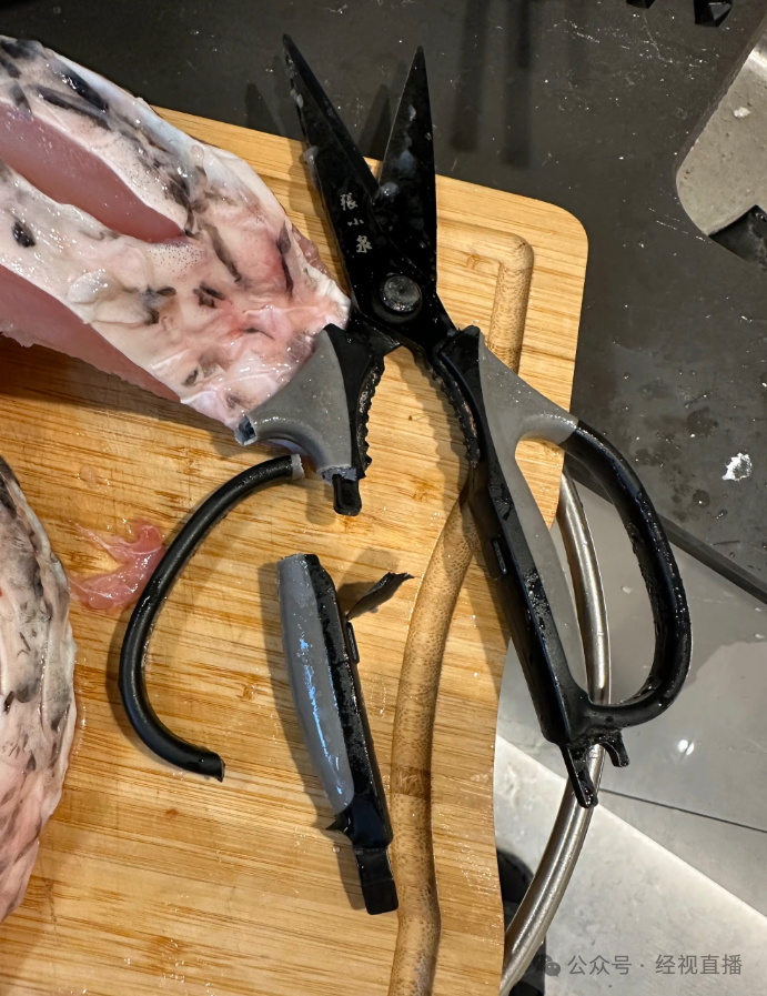 1月19日,有网友在社交媒体发布视频称,自己买的一款张小泉品牌厨房剪刀在剪切鲜鱼时,塑料手柄直接断裂。他仔细观察后才发现,该剪刀的手柄并非传统的一体式钢材包胶结构,两头是金属,中间却是塑料。他认为,剪刀手柄非一体式钢结构,两端却露出金属的设计,容易误导消费者。