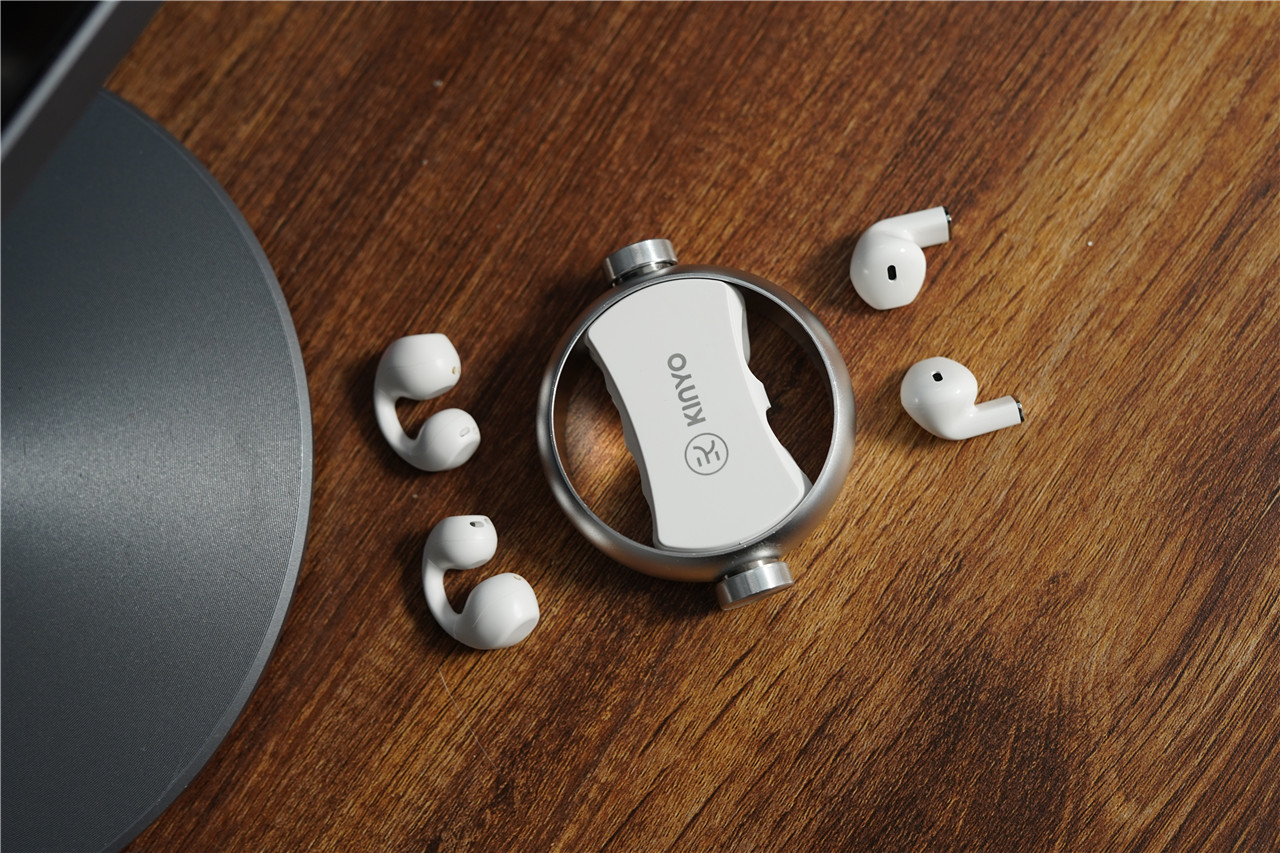 金运A2蓝牙耳机设计理念就是2副耳机随心切换,按照不同的使用需求,可以随时切换蓝牙耳机,例如较为静置的聆听场景,咱们可以选择半入耳佩戴方式的蓝牙耳机,如果要出行使用的话,开放式耳夹式蓝牙耳机无疑是较为理想的选择。