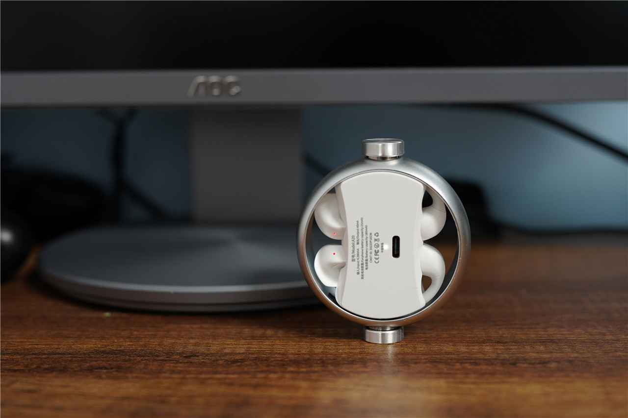 金运A2蓝牙耳机有意境黑、极光白、薄雾粉三款配色可供大家机型选择,我购入的大方且凸显高级感的极光白。耳机充电仓采用开放式设计,金属磨砂质感边框凸显格调,两边固定之后边框转动起来特别解压。