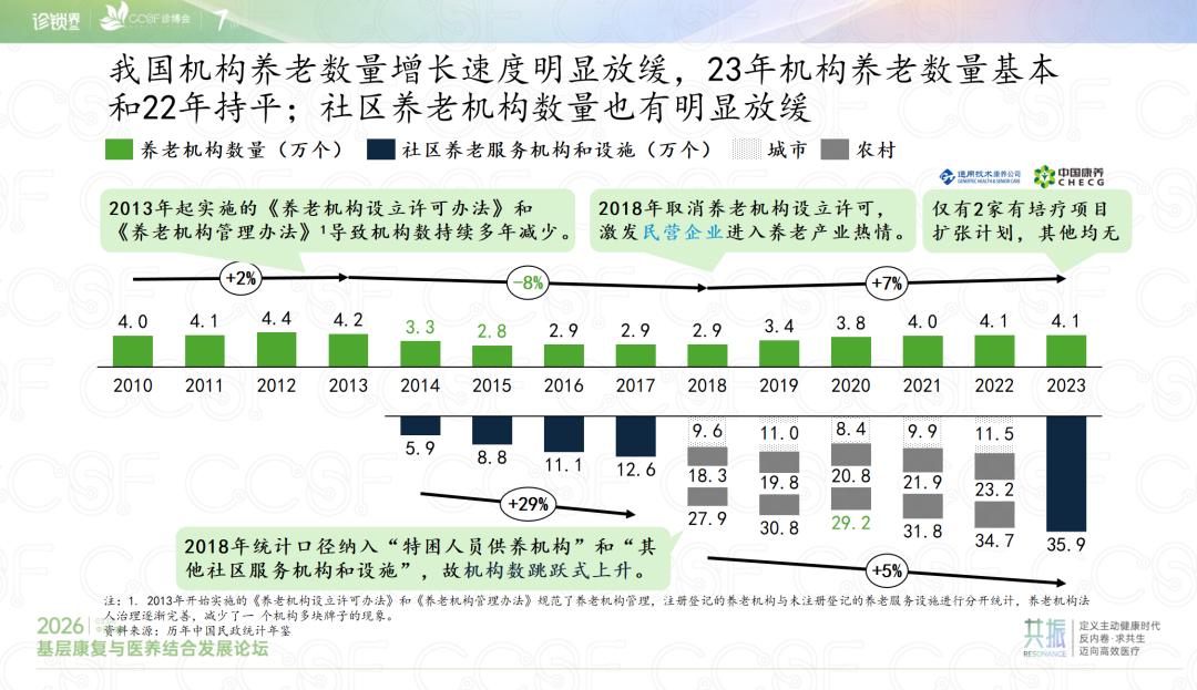 ④机构专业性不匹配。仅 14% 的机构拥有医养结合牌照,多数机构专业能力跟不上失能失智老人的护理需求。