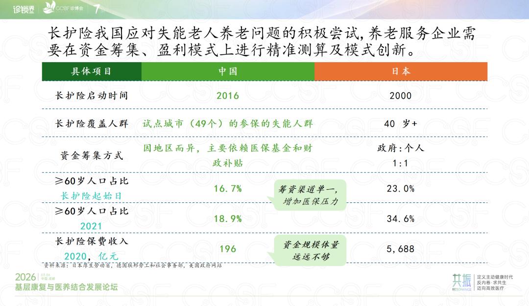 长护险的全面铺开将成为重要转折点,但机构不能被动等待。对比日本长护险发展经验,我国长护险在覆盖范围、资金规模上仍有提升空间,机构应主动适配政策要求,开发针对性服务产品,同时探索商业保险、个人支付等多元支付渠道,降低对单一支付来源的依赖。