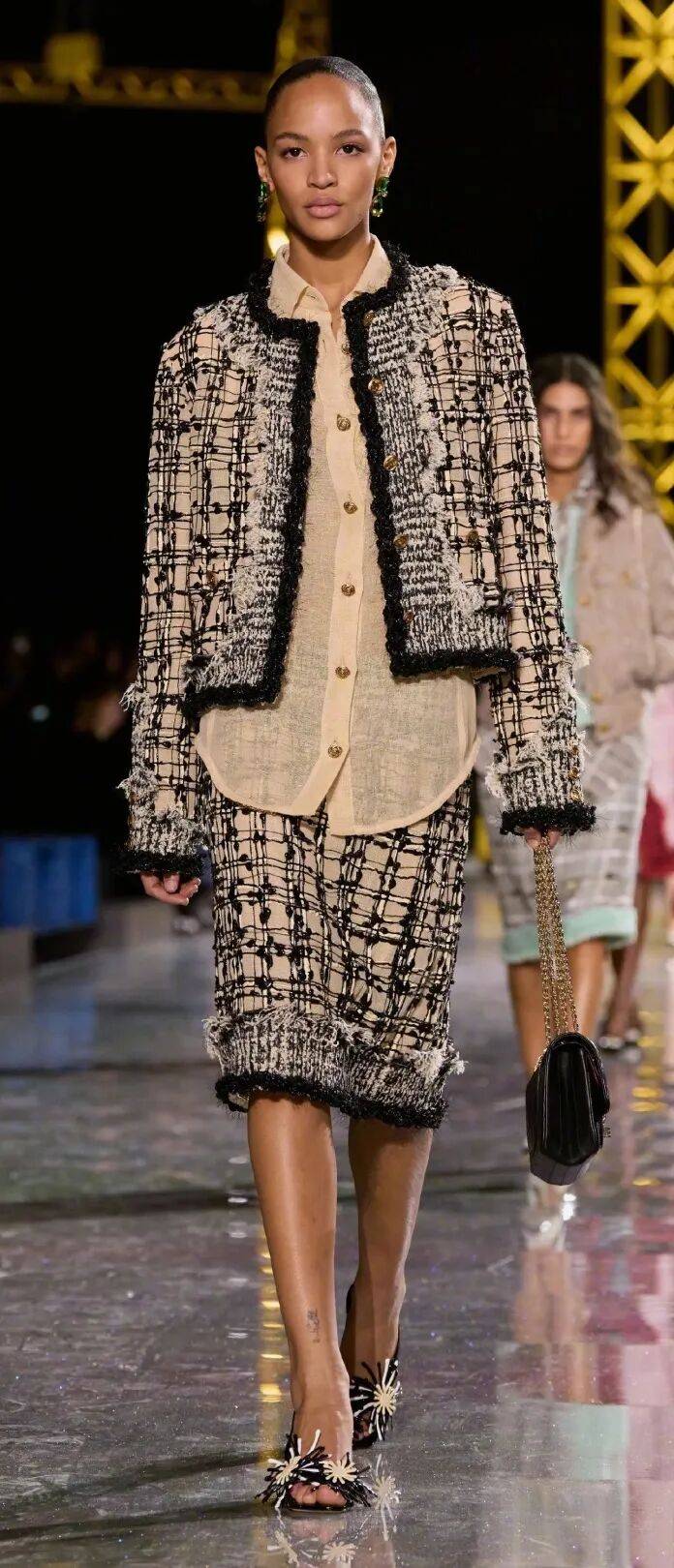 Matthieu Blazy执掌的Chanel 2026秋冬系列在大皇宫发布。设计师将目光投向1920年代的Flapper风格,低腰设计带来轻盈姿态,解放身体的同时,也让经典斜纹软呢有了新的呼吸感。