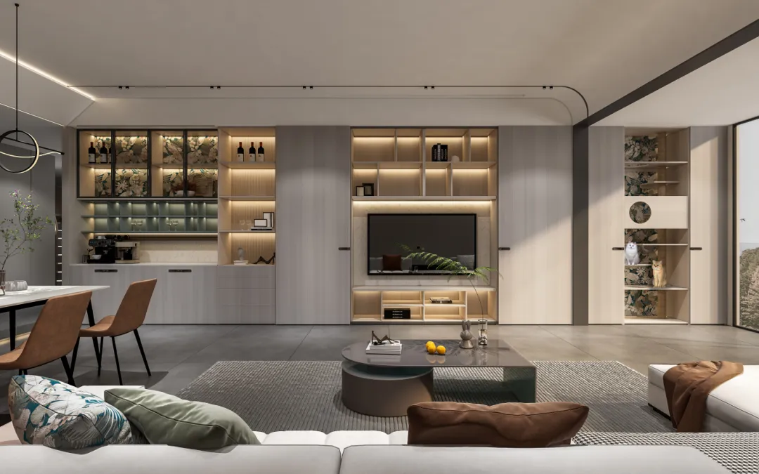 在以往室内布局中,很多居住者习惯将餐厅与客厅分隔开来,而开放式的客厅将餐厅自然地融入了客厅。通过开放式布局和减少不必要的装饰来增强空间的流通性,它让每一个角落都充满了生活的气息。你还可以根据自己的喜好和习惯来布置你的家,让每一个角落都充满个性和生活的痕迹。