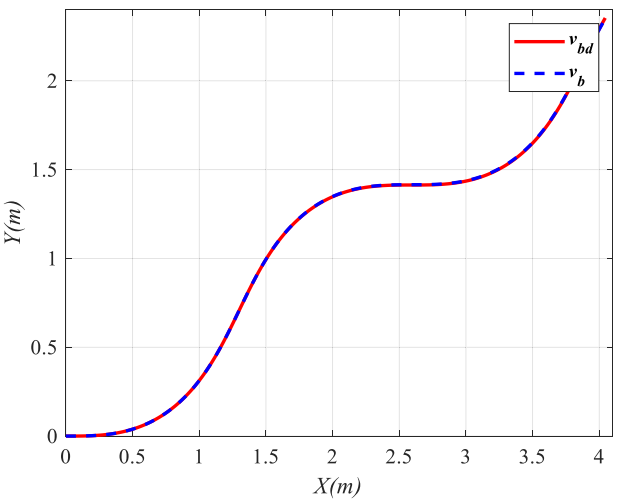 在后续仿真中,图2给出了机器人对参考轨迹的整体跟踪结果,实际轨迹与期望轨迹基本重合,说明控制器在软地形复杂扰动下仍能完成路径跟踪任务。