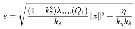其中 u_c 是前馈补偿控制,用于处理未知动力学和辅助系统项;u_u 才是后续通过 ADP 设计的最优控制项。经过前馈补偿后,系统进一步被压缩成
