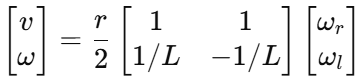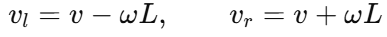 进一步得到左右轮的理论速度