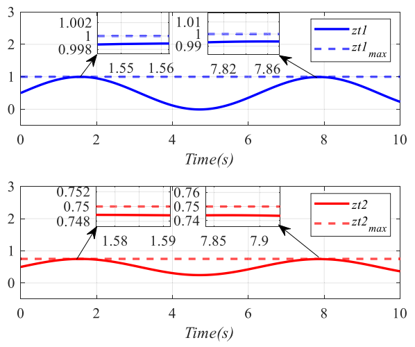 图5非常关键,它直接给出了复杂状态变量在控制过程中的演化结果。可以看到,系统状态始终保持在约束边界之内,这也是整篇论文最核心的结果之一。