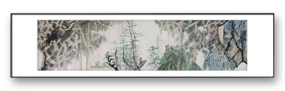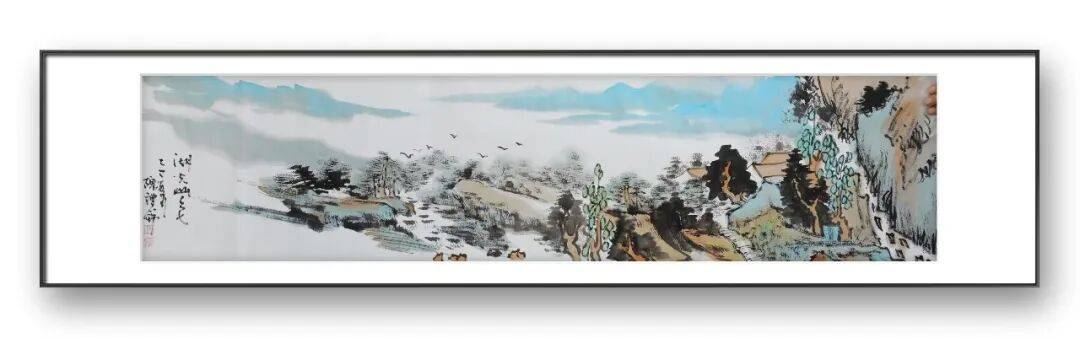 同时,隗礼锦先生的作品又不局限于传统文人画的避世情怀,而是融入了一种“人与自然和谐共生”的现代哲思。画面中的山水,不是孤立的存在,而是与人类活动相互交融的有机整体,茅屋与山林相依,渔舟与江水相伴,传递出一种“人是自然的一部分,自然是人的精神家园”的价值理念。这种意境,既具有传统文人画的空灵悠远,又具有现代艺术的人文关怀,让观者在欣赏笔墨之美的同时,获得精神的滋养与共鸣。