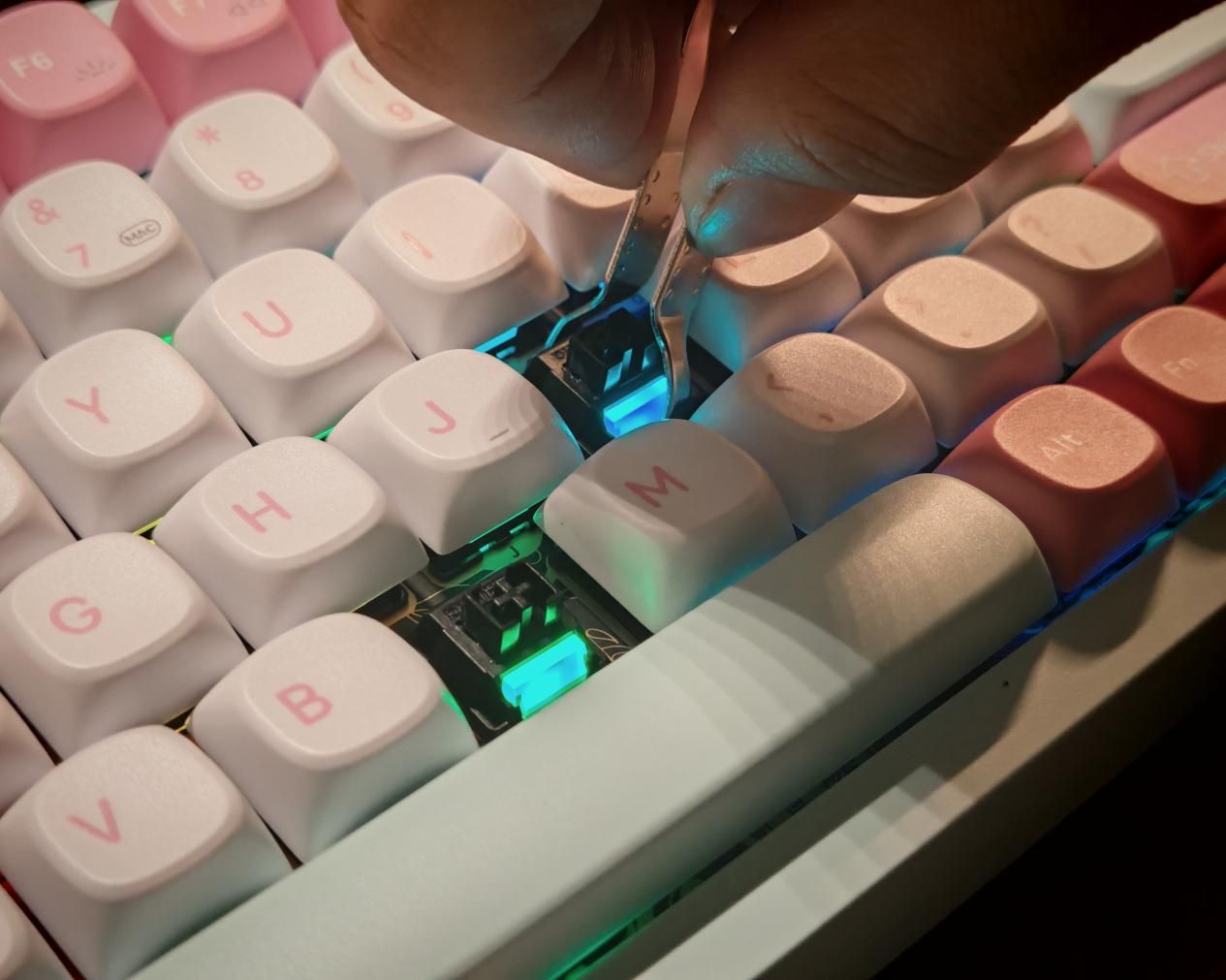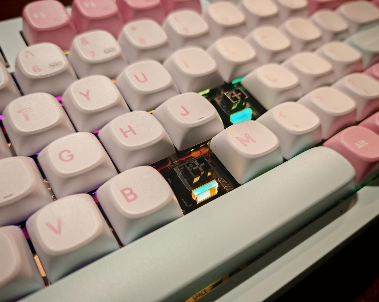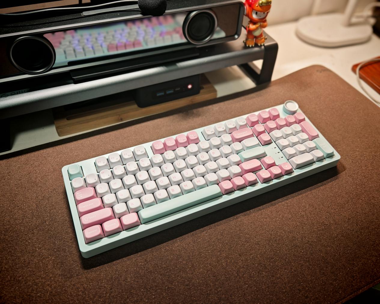对于很多小伙伴来说,最爱玩的就是键帽,多彩的键帽显得桌面也很有生气。SKN青龙4.0 Ultra采用原厂高度双色注塑PBT材质,1.5mm加厚壁处理,表面细磨砂触感,字符闭口工艺透光均匀。实测耐磨性优异,指甲反复刮擦无痕迹,长时间游戏后键帽表面仍保持干爽。